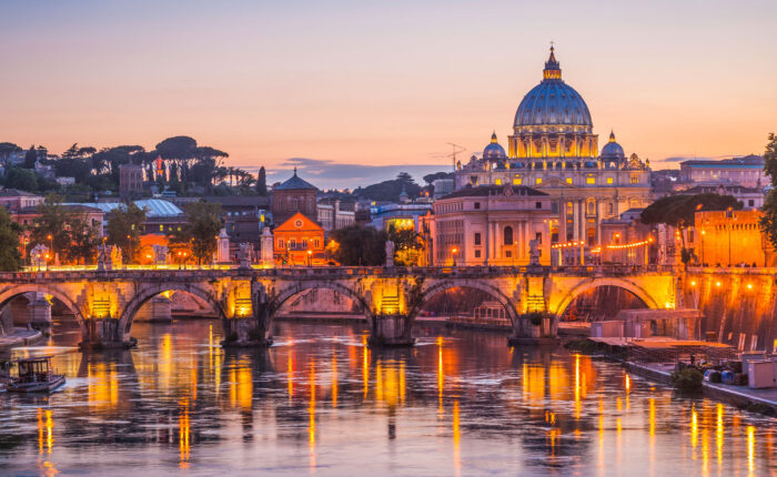 Συγκέντρωση στο αεροδρόμιο και πτήση για την «αιώνια» πόλη την Ρώμη. Με την άφιξη ,αρχίζει η ξενάγηση στην «Αιώνια Πόλη». Θα επισκεφθούμε το Κολοσσαίο, το μεγαλύτερο σωζόμενο αρχαίο ρωμαϊκό αμφιθέατρο του κόσμου, και την αψίδα του Μεγάλου Κωνσταντίνου. Περνώντας από την Οδό των Αυτοκρατορικών Αγορών στην καρδιά της αρχαίας Ρώμης, θα φτάσουμε στον λόφο του Καπιτωλίου και στην Πιάτσα Βενέτσια με το ογκώδες μνημείο αφιερωμένο στον Βίκτωρα Εμμανουήλ Β΄, τον πρώτο βασιλιά της ενωμένης Ιταλίας, στο οποίο βρίσκεται και το μνημείο του Άγνωστου Στρατιώτη, στη φημισμένη Φοντάνα Ντι Τρέβι και τέλος στην πολύβουη Πιάτσα ντι Σπάνια. Ακολούθως, θα μεταφερθούμε στη μεγαλόπρεπη Βασιλική του Αγίου Πέτρου, τη μεγαλύτερη εκκλησία του κόσμου, χτισμένη πάνω στον τάφο του Αποστόλου Πέτρου, όπου μεταξύ των άλλων θα δούμε την Πιετά του Μιχαήλ Άγγελου και το κιβώριο που δεσπόζει πάνω από τον παπικό βωμό, έργο του Μπερνίνι. Μεταφορά και τακτοποίηση στο ξενοδοχείο. Διανυκτέρευση.